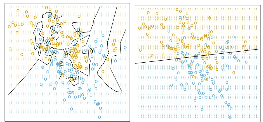 两种不同分类器的决策边界
