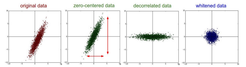 - 对$X$白化:中心化+球化,$X \rightarrow \dot{X} \rightarrow W$